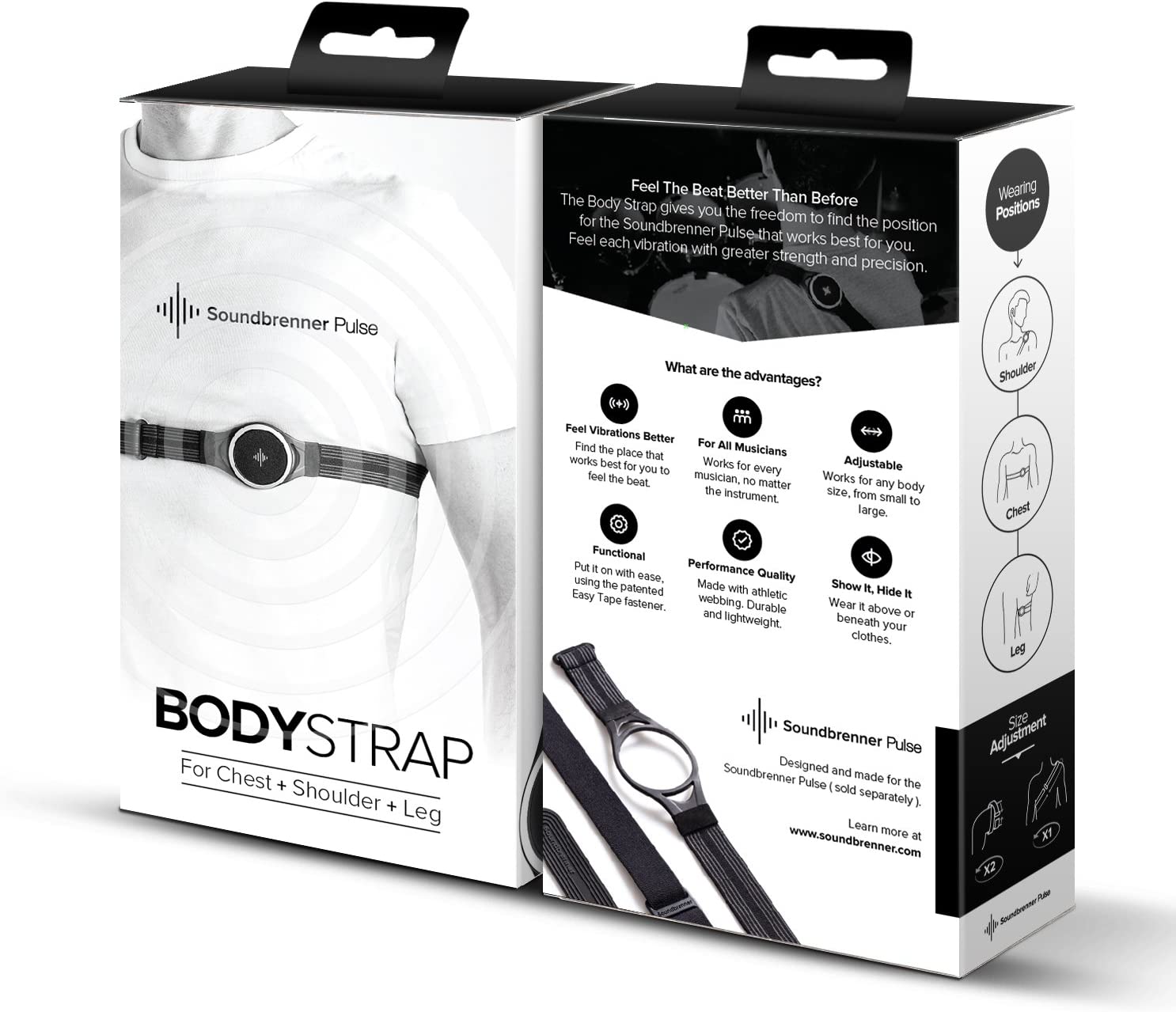 With the Pulse’s included straps, you can only feel the beat on your wrist, arm or ankle. However, with this optional body strap you can wear it on your thigh, shoulder or chest.