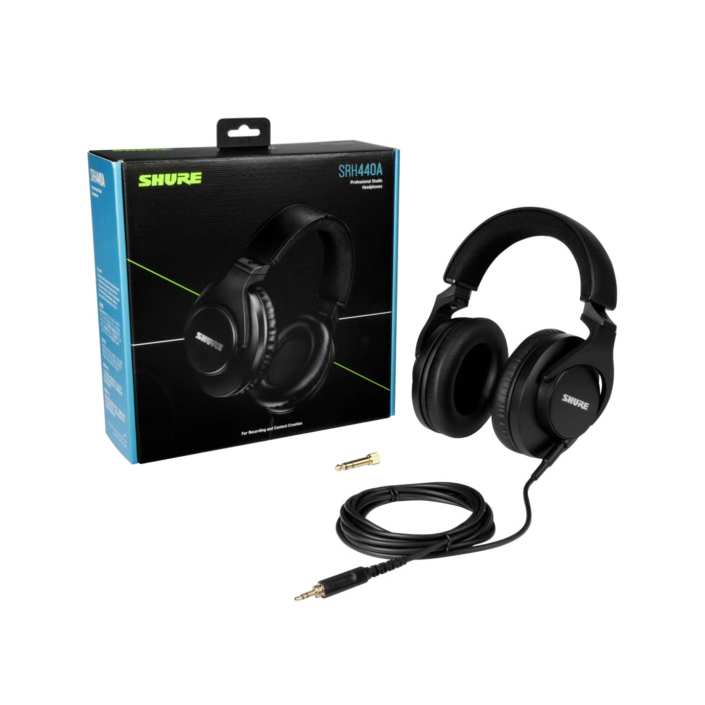 The Shure SRH440A Professional Studio Headphones deliver enhanced detailed frequency response with accurate audio for podcasting, home recording and critical editing/mixing. The consistent and uncolored sound response provides a very accurate representation of recorded audio, making it ideal for capturing talent in a podcast or recording session. The increased isolation, included straight cable and premium materials make it great for video as well.
