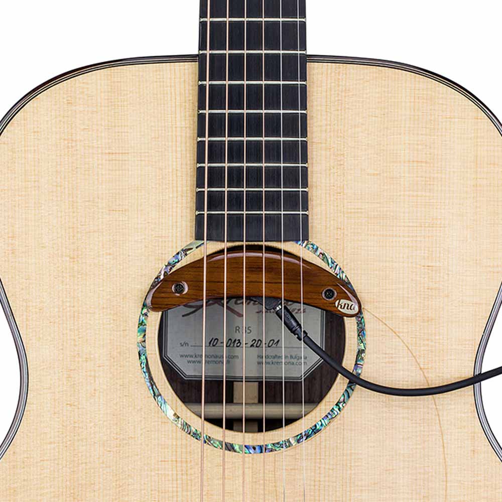 The KNA SP-1 Soundhole Pickup easily allows you to plug your steel string acoustic guitar into an amplifier. This pickup provides a warmer tone compared to other soundhole pickups. It’s compact design tucks away nicely near the fretboard, and blends in with its wooden finish.