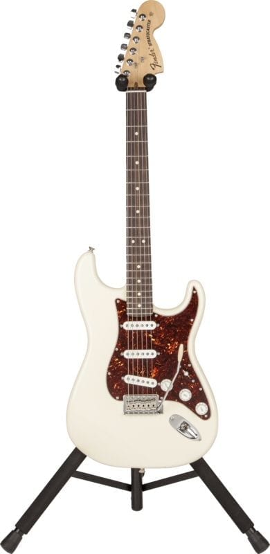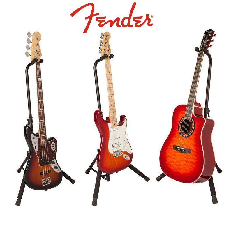 The Fender deluxe hanging guitar stand conveniently & safely showcases your acoustic guitar, electric guitar or bass.
