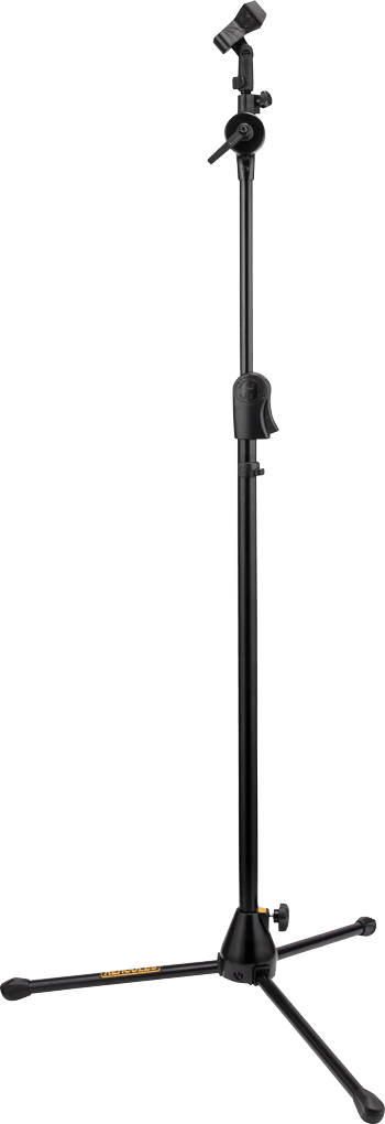 The Hercules MS523B PRO EZ Clutch Tripod Hideaway Mic Stand features a short telescoping hideaway boom and can easily be converted to a boom or straight stand.