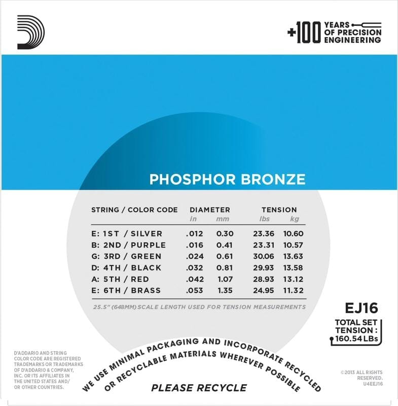 - EJ16 D’Addario’s most popular acoustic set, which deliver the ideal balance of volume, projection and comfortable playability.