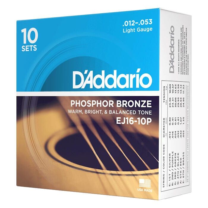 - EJ16 (12-53) D’Addario’s most popular acoustic set, which deliver the ideal balance of volume, projection and comfortable playability.