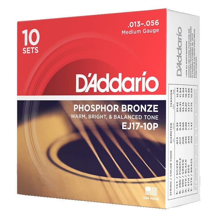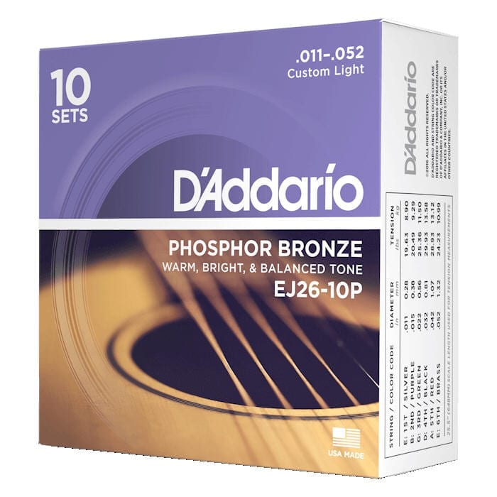 D’Addario EJ Phosphor Bronze Acoustic Guitar String 10-packs