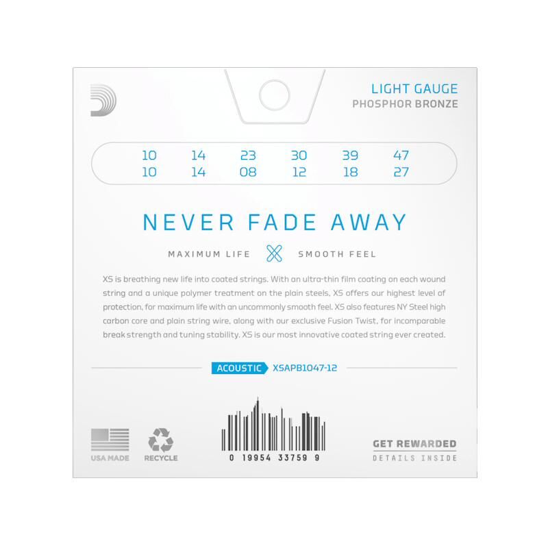 - XS Phosphor Bronze strings have the longest life of any D’Addario acoustic string, thanks to the ultra-thin XS film coating.
