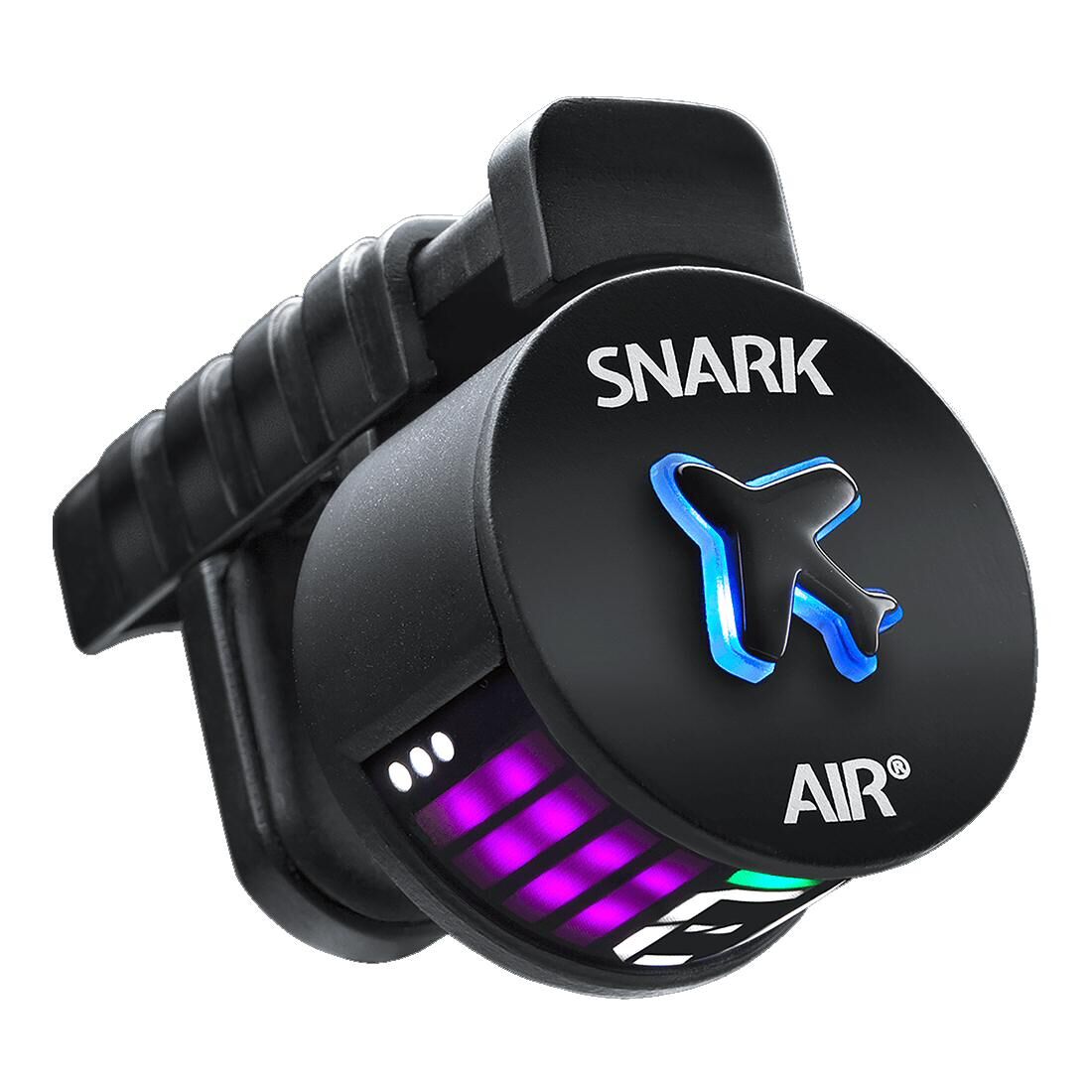 No switches or buttons. Just tap Snark Air and you are cleared for take off! Tap twice to change display to work well behind your headstock!