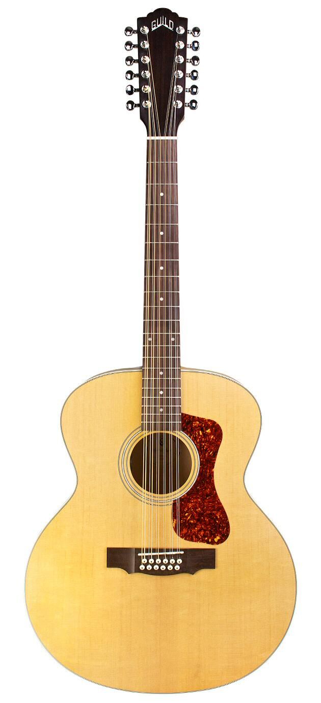 With their large, rounded bodies, jumbo acoustic guitars have been Guild’s forte since 1954. Combining this shape with the ever-popular 12-string construction results in a full-toned, impressively voiced acoustic instrument.