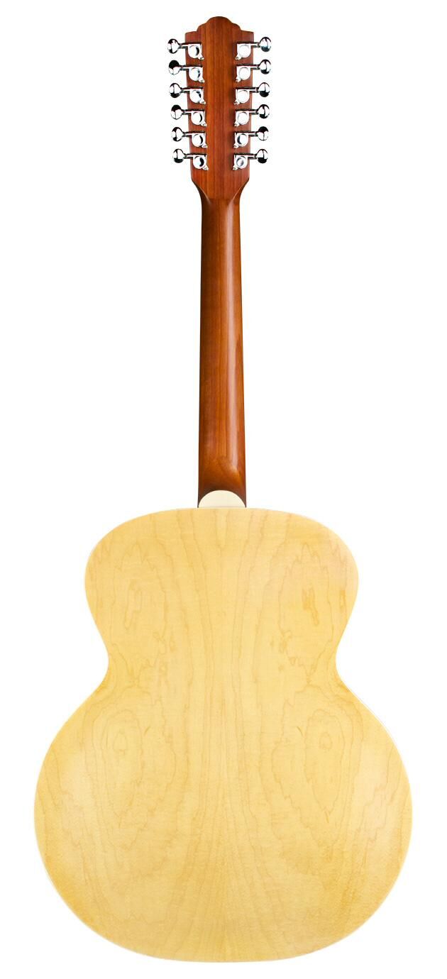 Built with a solid spruce top, maple sides, and arched maple back, the F-2512E Maple has the bright, jangly tone characteristic of Guild’s twelve string guitars. Guild’s signature arched back design allows for great volume and projection, long sustain, and a lush, full sound.
