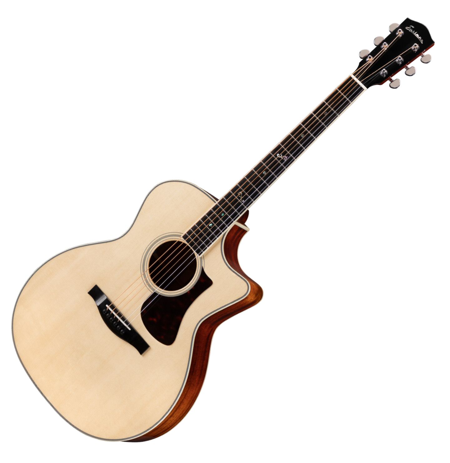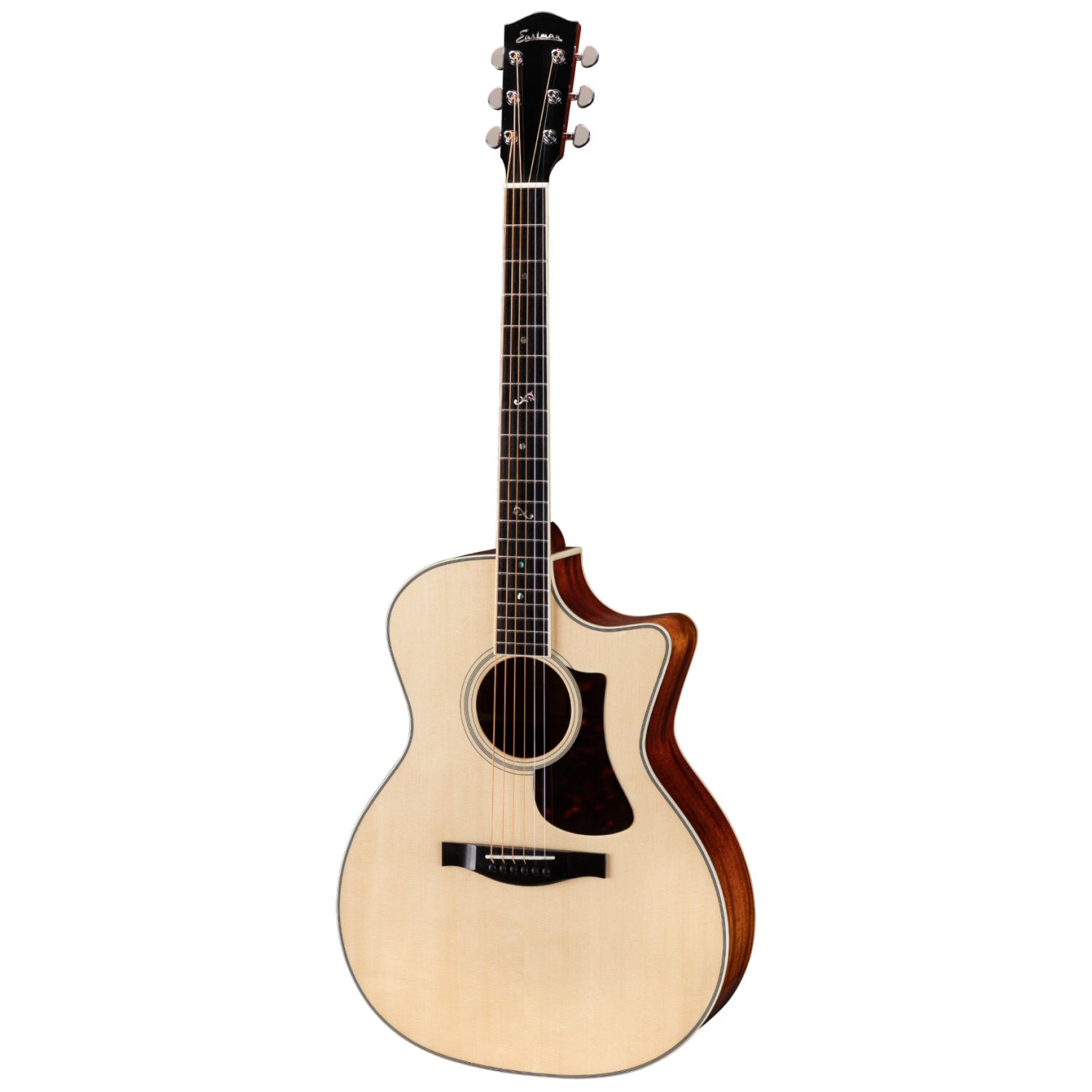 The Eastman AC322CE acoustic guitar features a cutaway Grand Auditorium size body with a solid Sitka spruce top & solid mahogany back and sides.