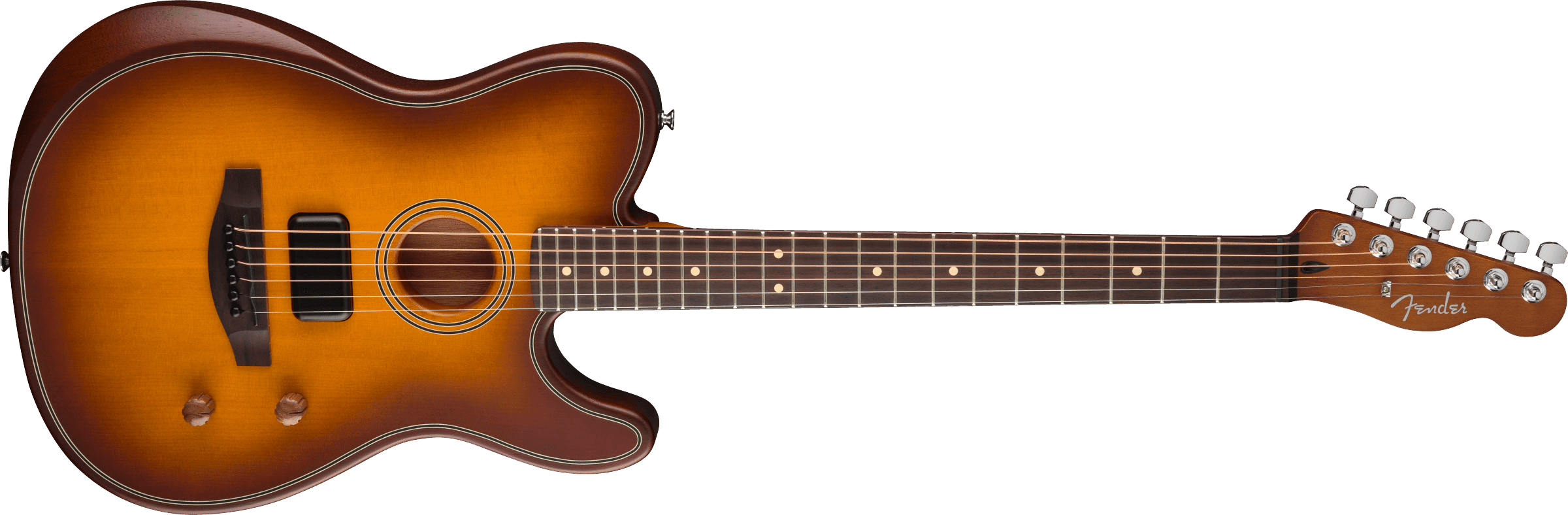 The dual personality of the Fender Acoustasonic Standard Telecaster equips players with a versatile spectrum of acoustic and electric tones in a single creative tool. With a braced solid Sitka spruce top, fully chambered body, inventive Fender and Fishman-designed analog electronics with volume and blend control, and the familiar playing feel of a Fender icon, this Tele truly sets the standard for the Acoustasonic experience.
