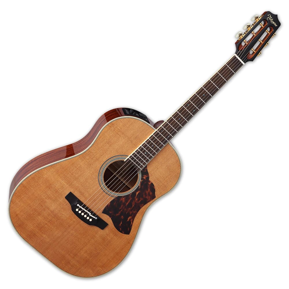 This slope-shoulder dreadnought is a huge-sounding acoustic guitar that incorporates a 12th fret to the body neck joint, providing more fullness and volume. The top is thermal spruce, imparting a played-in “vintage” tone, plus the slotted headstock has a cool, old-school vibe. This design also imparts more down-tension on the nut, giving open strings extra clarity. Plus, you can easily bring that huge tone to the stage with the famous Takamine CT4B-II onboard electronics.