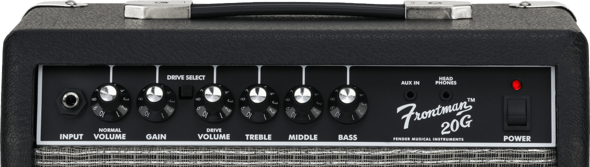 The 20G features a simple intuitive design that anyone, from beginners to pros, will immediately understand. It includes a clean channel with a volume and three EQ knobs for sonic flexibility, plus a separate switchable Drive channel with its own volume. It also comes with 1/8” auxiliary in to play along with your favorite tunes and a headphone jack for silent practice. The Frontman also puts out 20 watts into an 8” Special Design Speaker that delivers great tones when practicing or playing with friends.