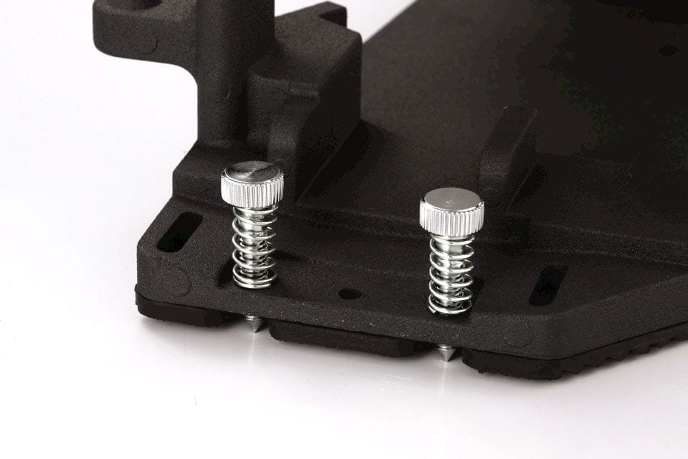 Loosening the adjustment screw lets you freely adjust the beater angle along with the footboard angle.