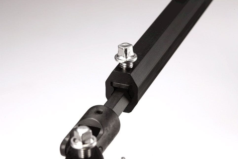 A wing bolt firmly tightens the clamp for secure attachment. It also allows the clamp to accommodate different hoop thicknesses.