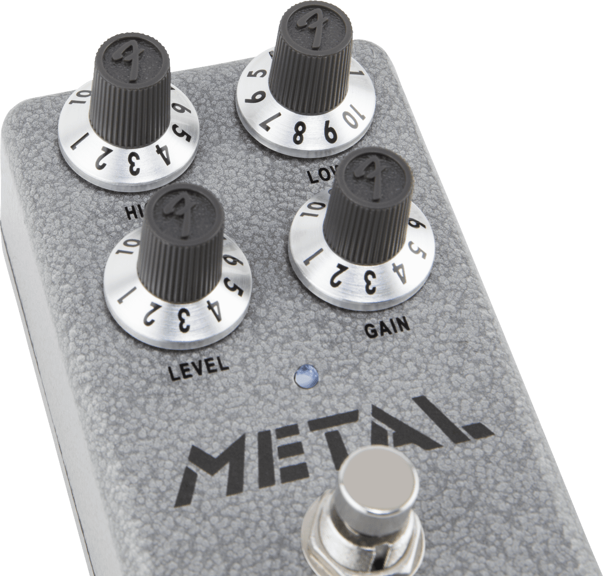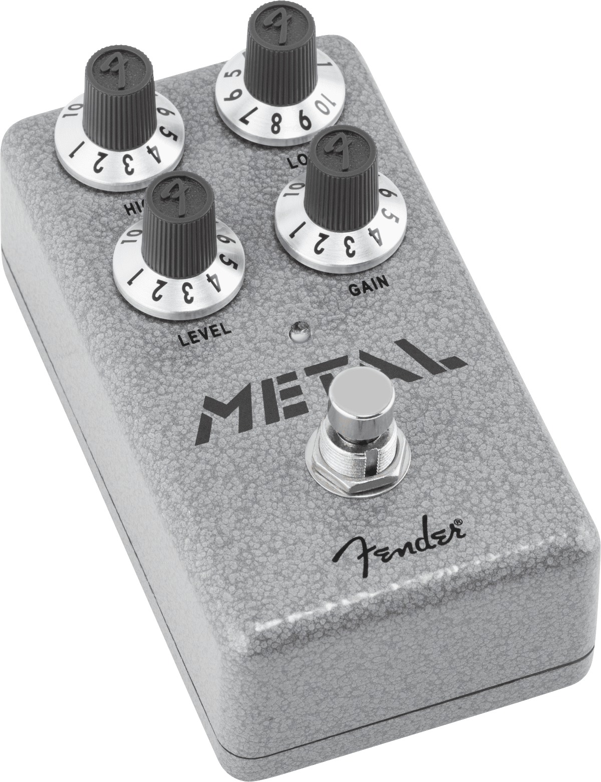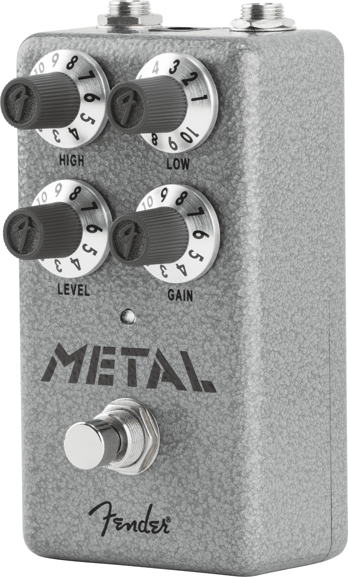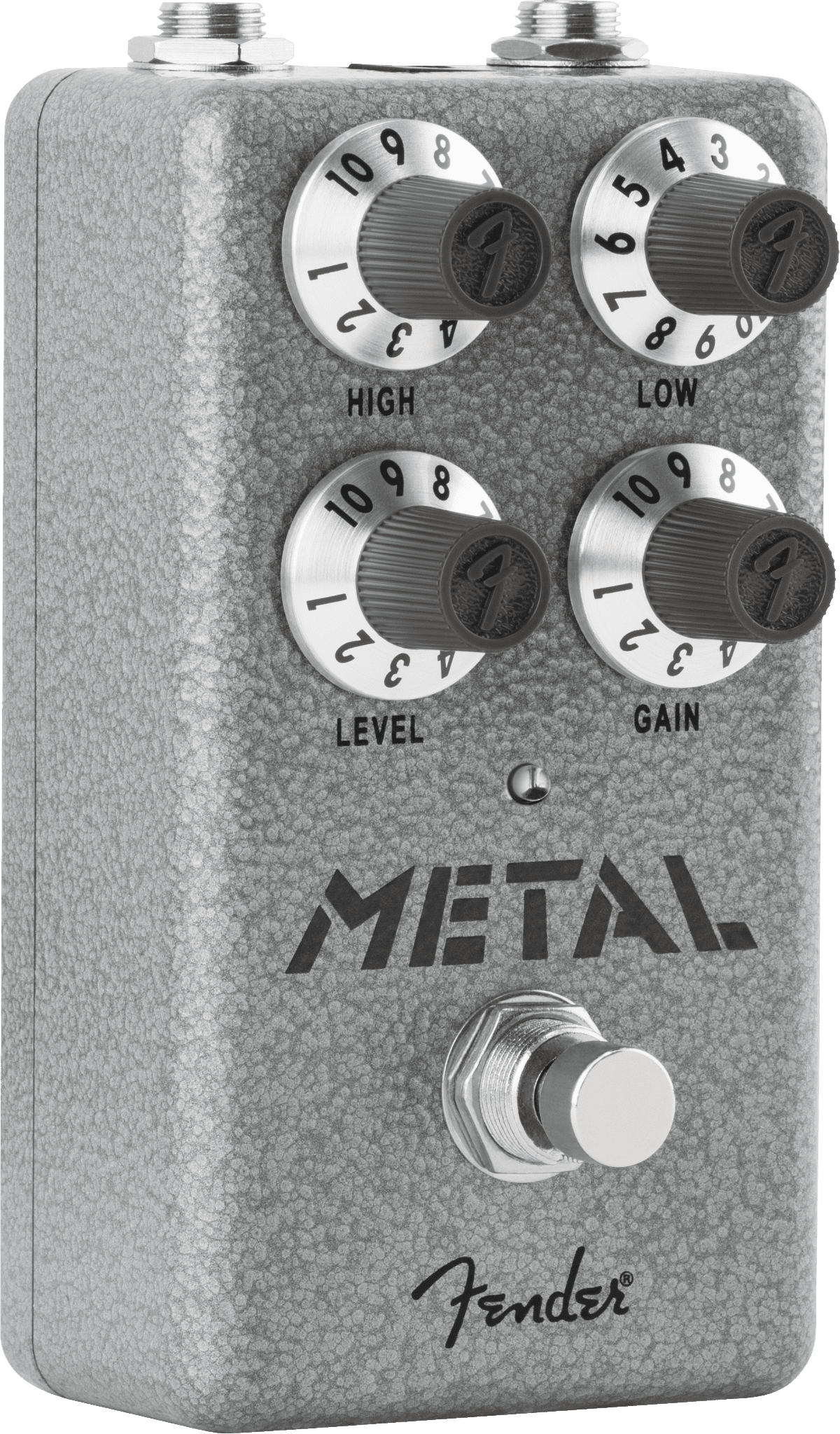 With powerful tone-shaping EQ controls, top-mounted in & out jacks and true bypass switching, the Fender Hammertone Metal pedal delivers chunky high gain. Its tone sits perfectly in a mix and will integrate seamlessly into your rig. Aggressive and dynamic distortion can be elusive – but your search is over. More Gain, No Pain!