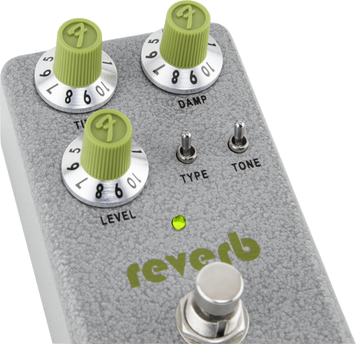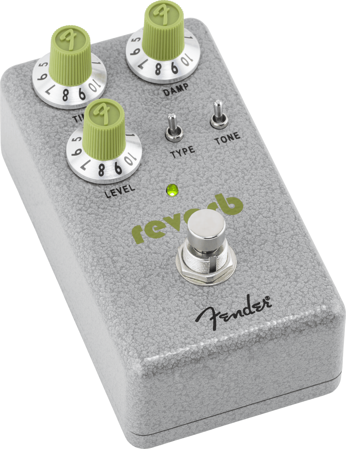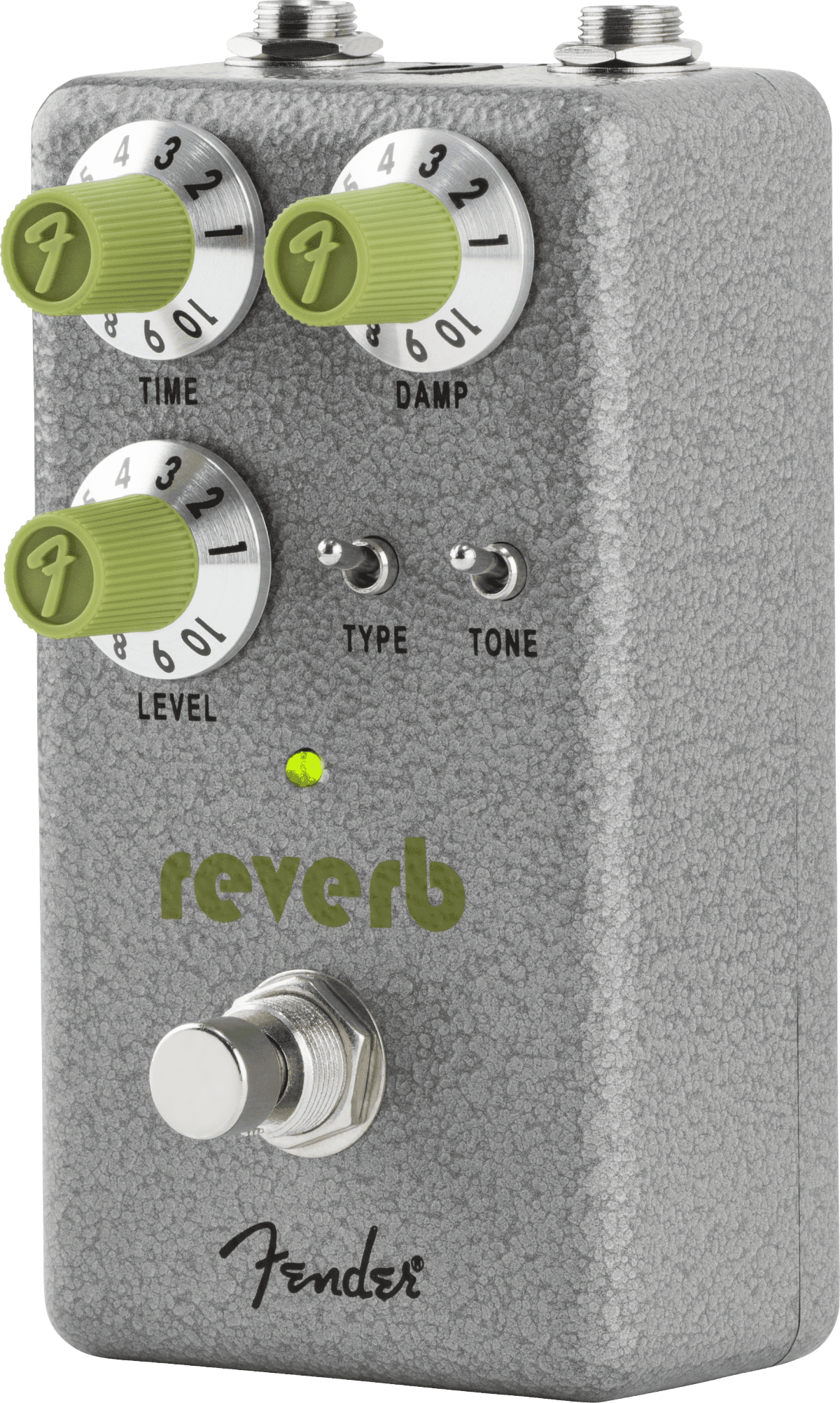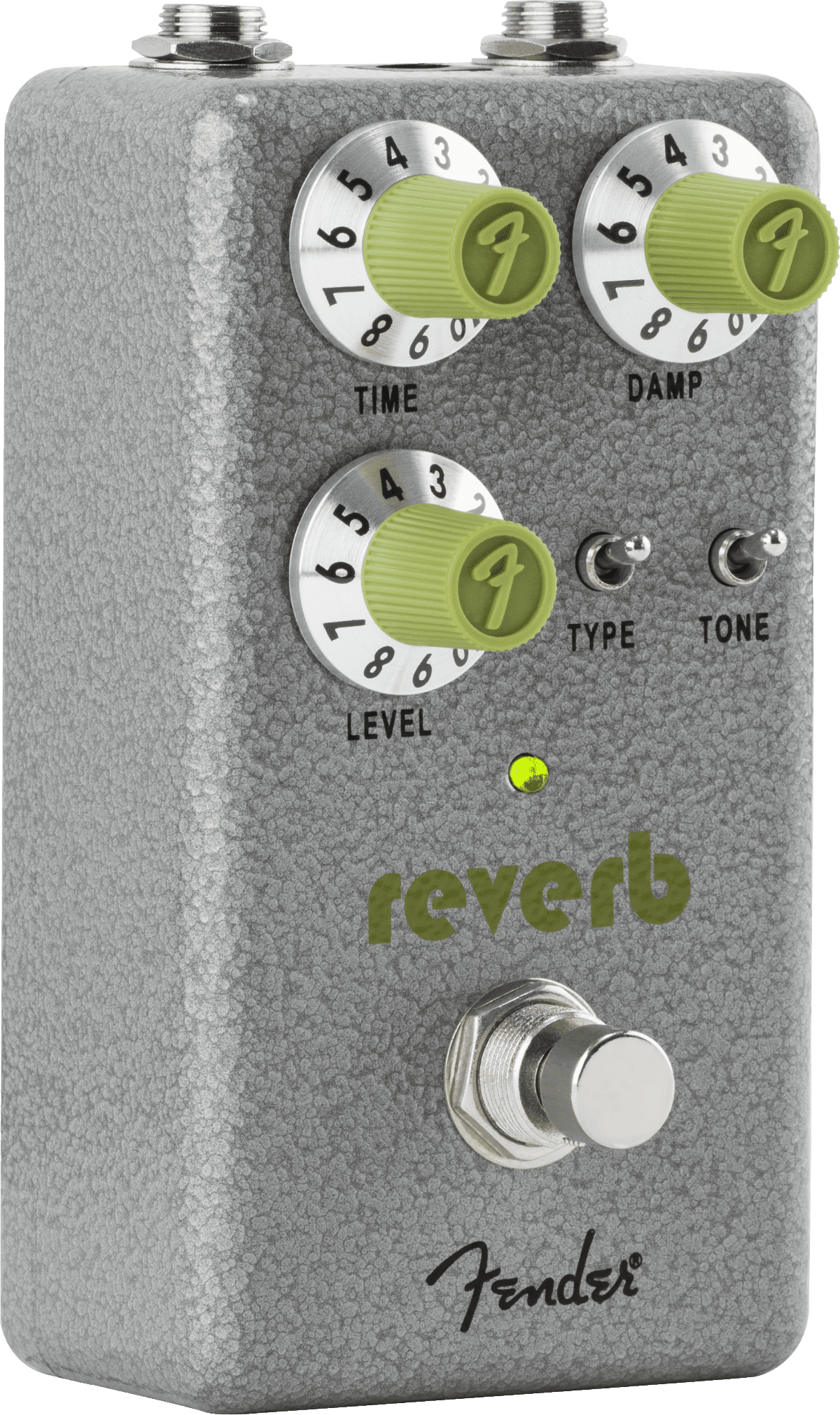 Fender & Reverb. Can you name a more iconic duo? The Fender Hammertone Reverb delivers three classic reverb effects: Hall, Room and Plate. And all in a compact stomp that will integrate seamlessly into your rig. Powerful damping control and tone switch offer supreme flexibility, while the Fender-designed on-board reverb tones are perfect for subtle to extreme ambience.