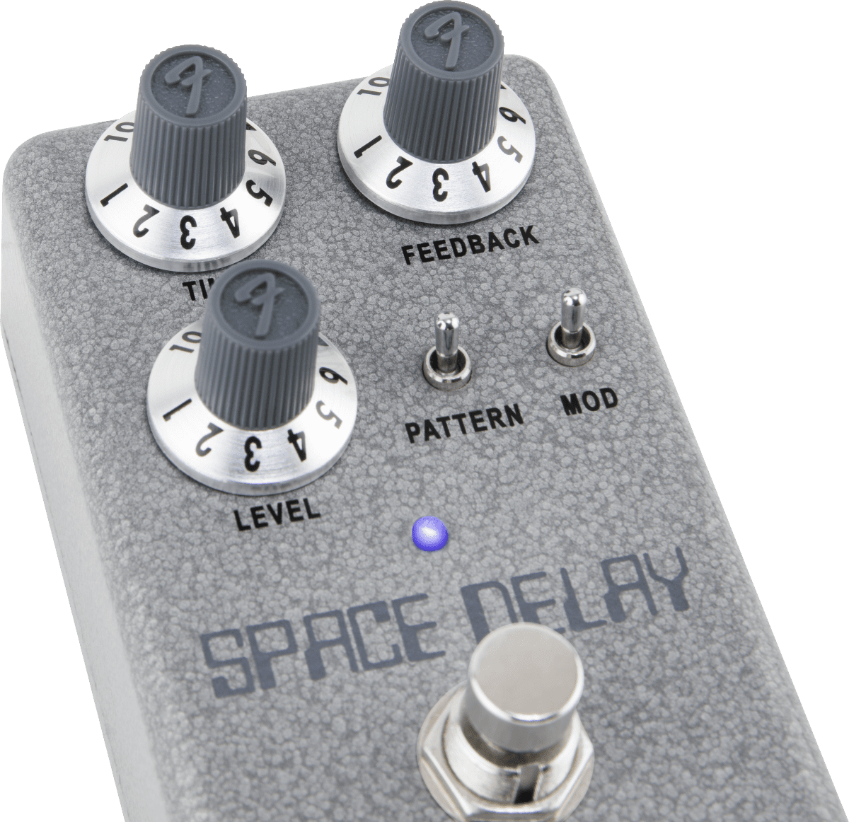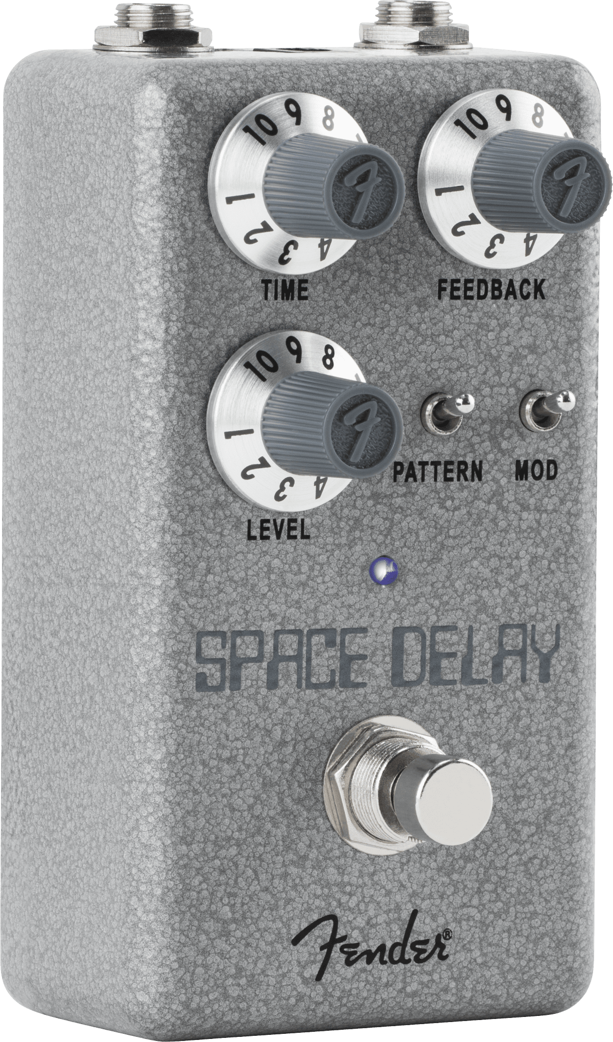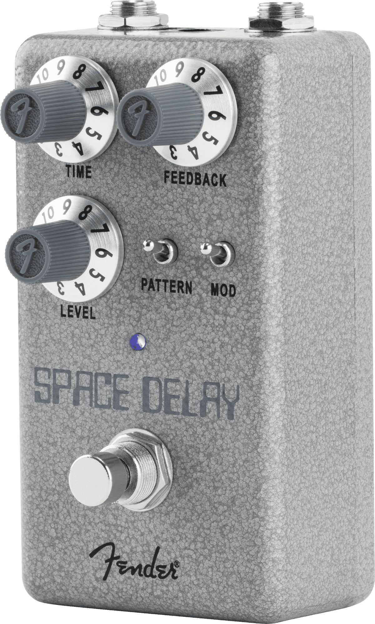 The Fender Hammertone Space Delay is an amazing echo pedal. Warm, analog-style saturation and gorgeous ‘tape’ warble combine to make a perfect companion for any ambience-inclined soundscapist. From subtle and natural repeats to awesomely oscillating waves of tone, the Space Delay delivers everything you need to create your next atmospheric masterpiece. Analog Dry-Through keeps your tone pure when the effect is on, while the pedal board-friendly top-mounted in & out jacks and true bypass footswitch mean it will integrate seamlessly into your rig. Take your guitar to the stratosphere.