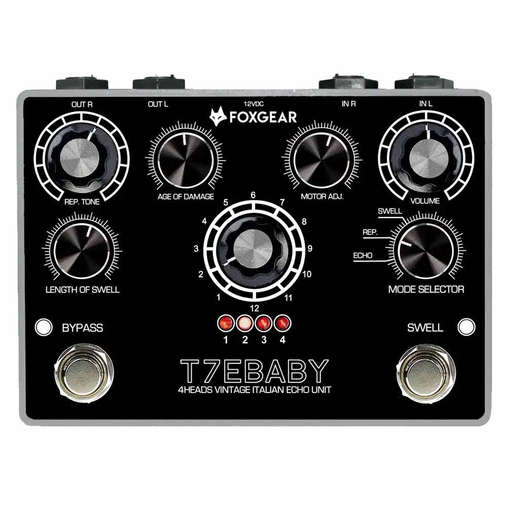 - Size: the new FOXGEAR T7E Baby enclosure makes it one of most pedal board-friendly of the “Binson-inspired” pedals: only 3,5” x 5”!! ( 9 x 13cm.)