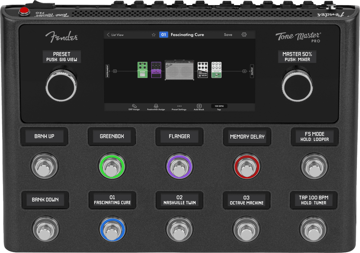 Fender Tone Master Pro is the first no-compromise multi-effects guitar workstation that features the amazing sound quality that the Tone Master series is known for. Combining a powerfully intuitive interface and the most comprehensive I/O array available, the Tone Master Pro is the best sounding, most powerful and easiest to use guitar processor ever.