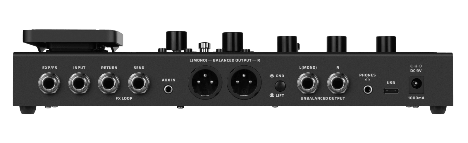 - Built-in expression pedal controlling up to 3 effect parameters