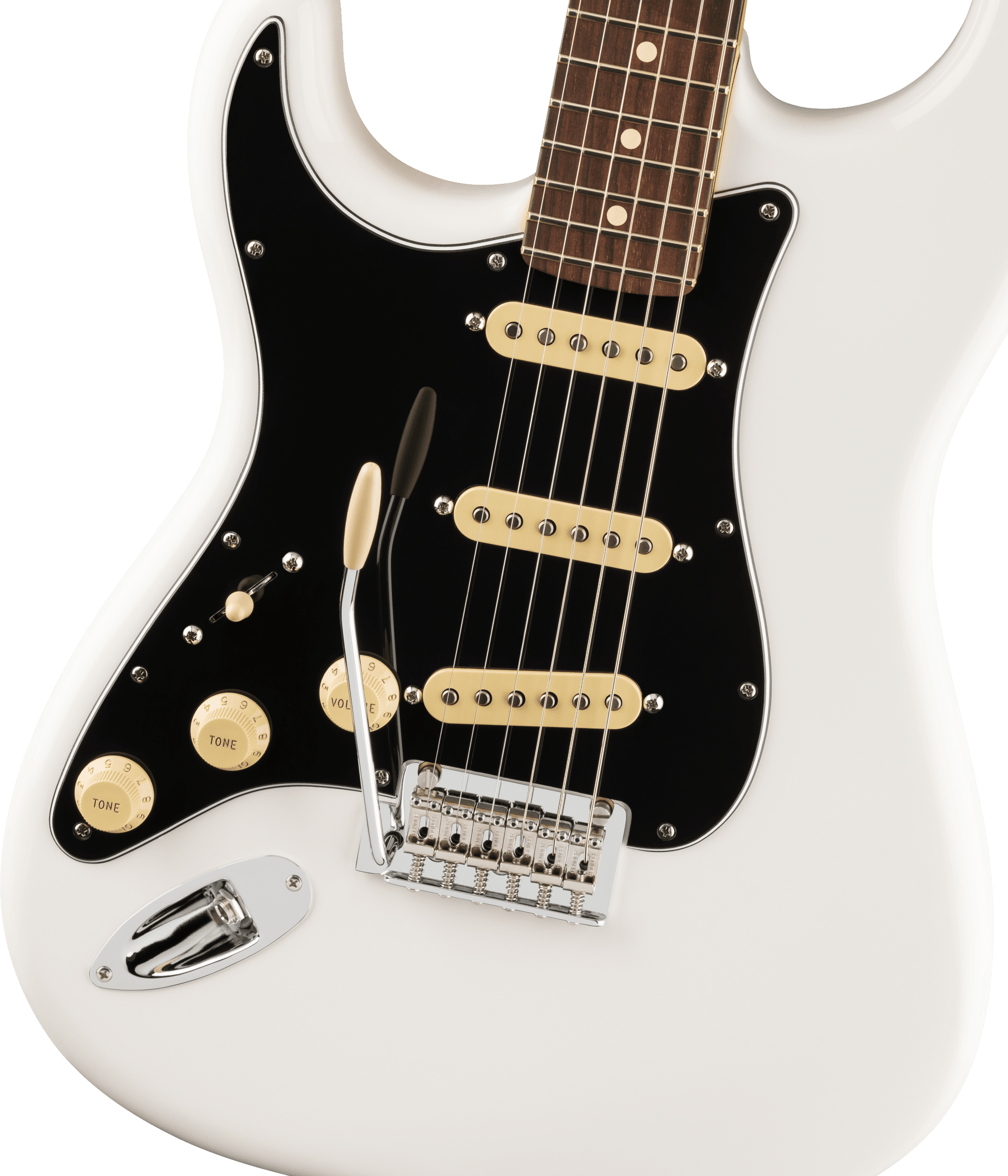 This Stratocaster features a two-point Synchronized Tremolo with bent steel saddles for definitive Strat tone with superior tremolo action for the most expressive vibrato and most daring dive bombs.