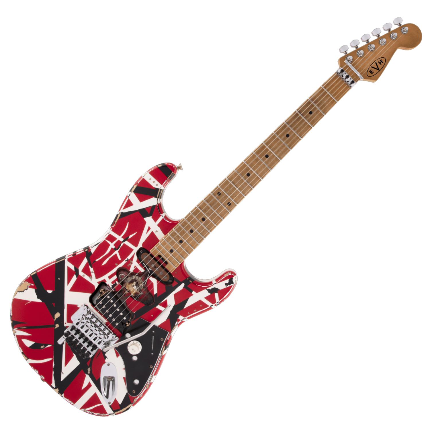 Sporting Eddie’s famed red with white-and-black-striped paint job and a worn-in reliced look, the all-new EVH® Striped Series Frankenstein™ “Frankie” features a basswood Stratocaster®-style body paired to a graphite-reinforced quartersawn maple neck.