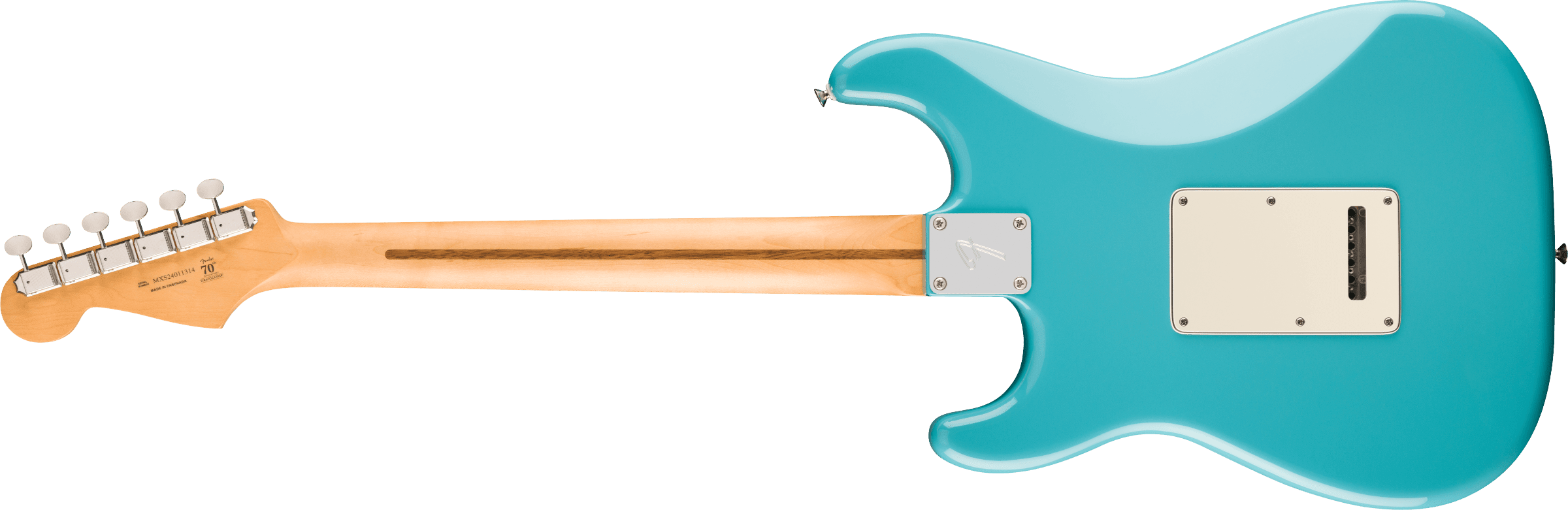 The Player II Stratocaster HSS radiates that timeless charm, but under the hood it’s primed for today’s players. Everything about the neck is designed for fast and fluid playability. From the Modern “C”-profile with silky satin urethane finish on the back to the comfy 9.5”-radius slab rosewood or maple fingerboard with smooth rolled edges and 22 medium jumbo frets. You’ll find classic Fender finishes and never-before-seen colors unearthed from the archives. Player Series Alnico V Single-Coil Strat® pickups offer crystalline highs, musical mids and tight lows that elevate any genre. The 5-way switch lets you dial in everything from glassy neck pickup chime to rowdy bridge pickup roar. And, of course, and all points in between. A 2-point tremolo partners with ClassicGear™ tuners to ensure precise tuning stability. This electric guitar provides the flexibility to explore endless sonic possibilities.