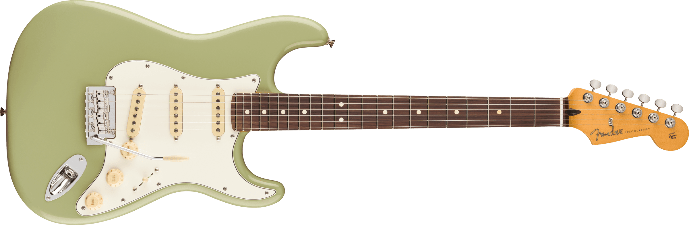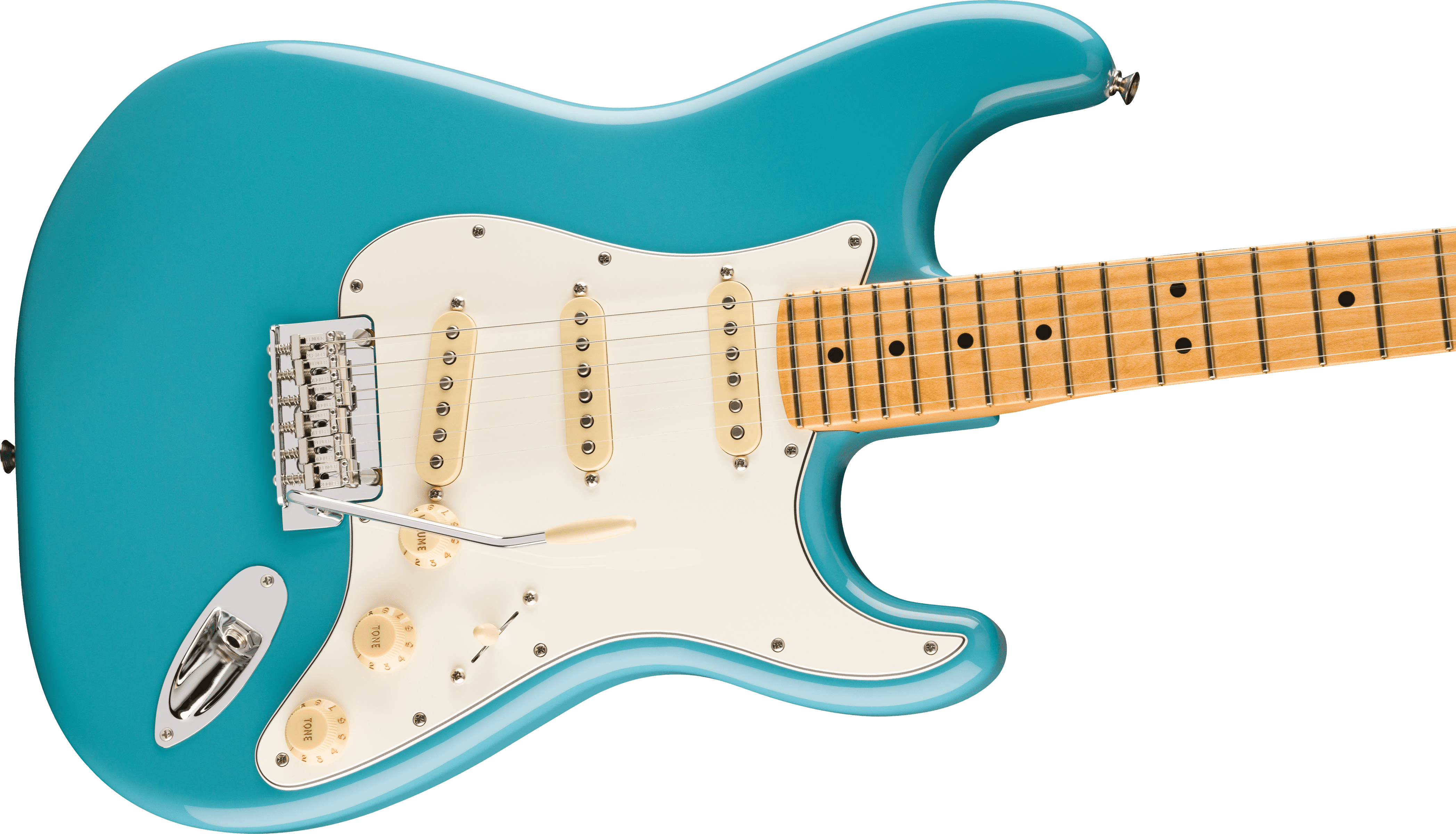This Stratocaster features a two-point Synchronized Tremolo with bent steel saddles for definitive Strat tone with superior tremolo action for the most expressive vibrato and most daring dive bombs.