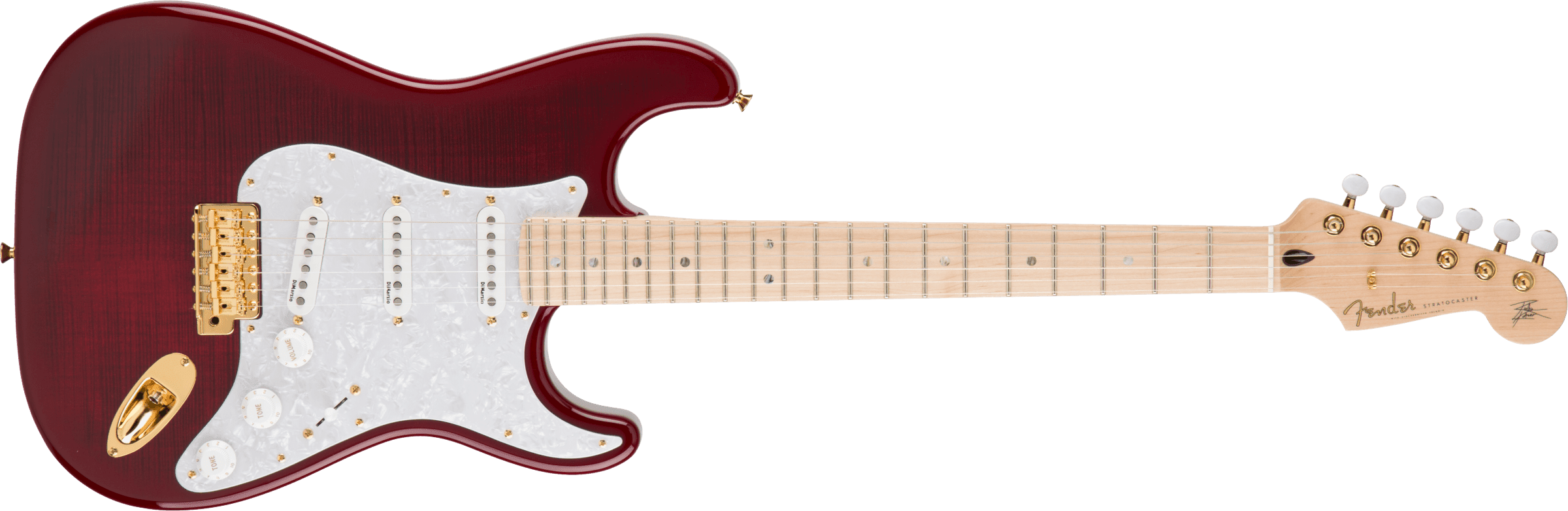 Featuring a striking combination of upscale appointments and high-performance playability, the Fender Richie Kotzen Stratocaster pairs a beautiful flame maple top finished in exclusive Trans-Burst finishes with a comfortably contoured ash body and a fast-playing thick ā€œCā€-shaped neck. Gold hardware completes the upscale look and an array of custom DiMarzioĀ® pickups provide a host of excellent sounds. This Stratocaster perfectly harnesses the flare of Richie’s virtuosic playing style and delivers sweet, punchy tone ready for the studio and stage.
