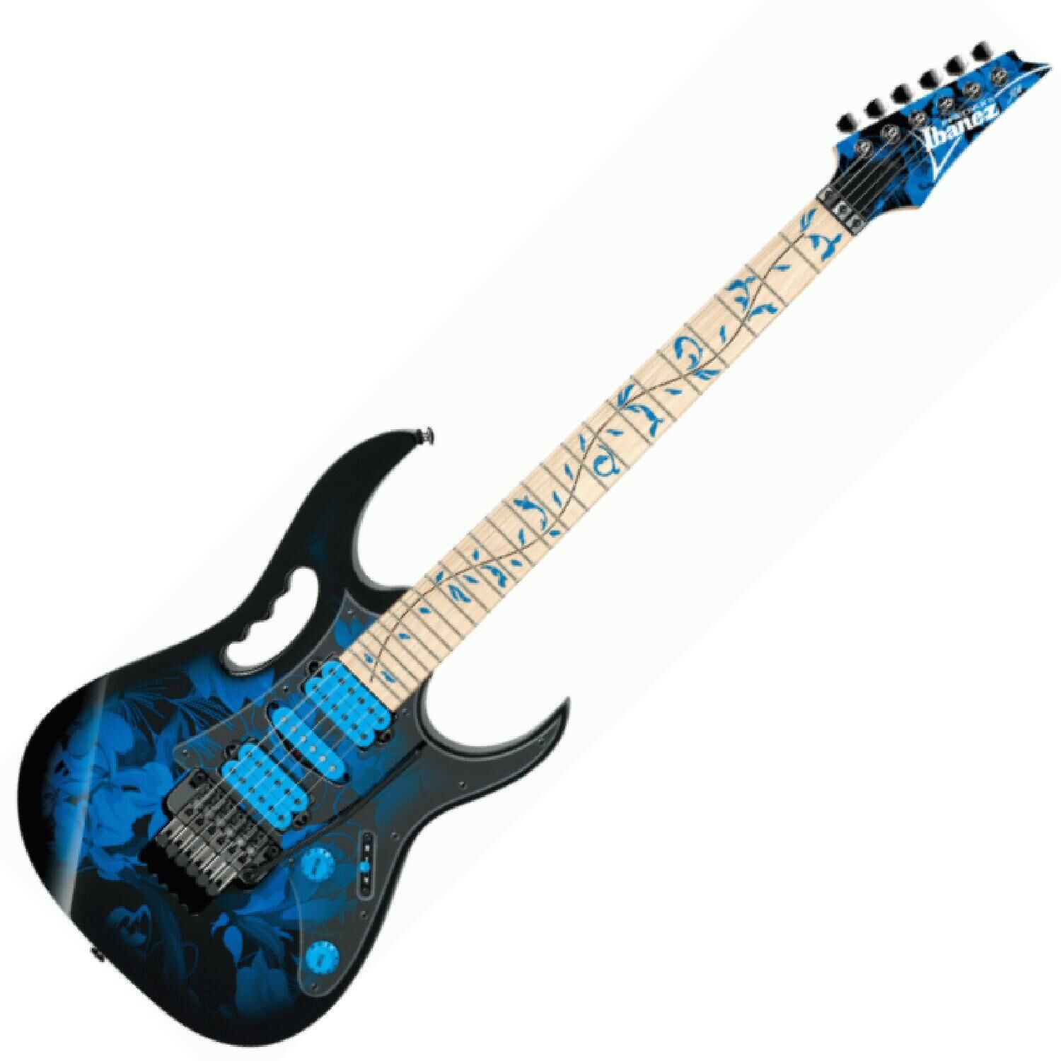 As part of the Ibanez Premium Series, the Ibanez JEM77P BFP Steve Vai Signature Electric Guitar is a high quality instrument created for the working pro. This latest incarnation sports a custom floral design influenced by the original version. The JEM77P starts with an American Basswood body covered in a stunning Blue Floral pattern that maintains its unique color scheme with matching blue pickups, selector switch and control knobs. This theme continues up the neck with an elegant blue Tree of Life inlay that prominently stretches along the contrasting Maple fingerboard. The Wizard neck includes Jumbo frets, finished with the Premium Fret Edge Treatment for smooth, comfortable performance.