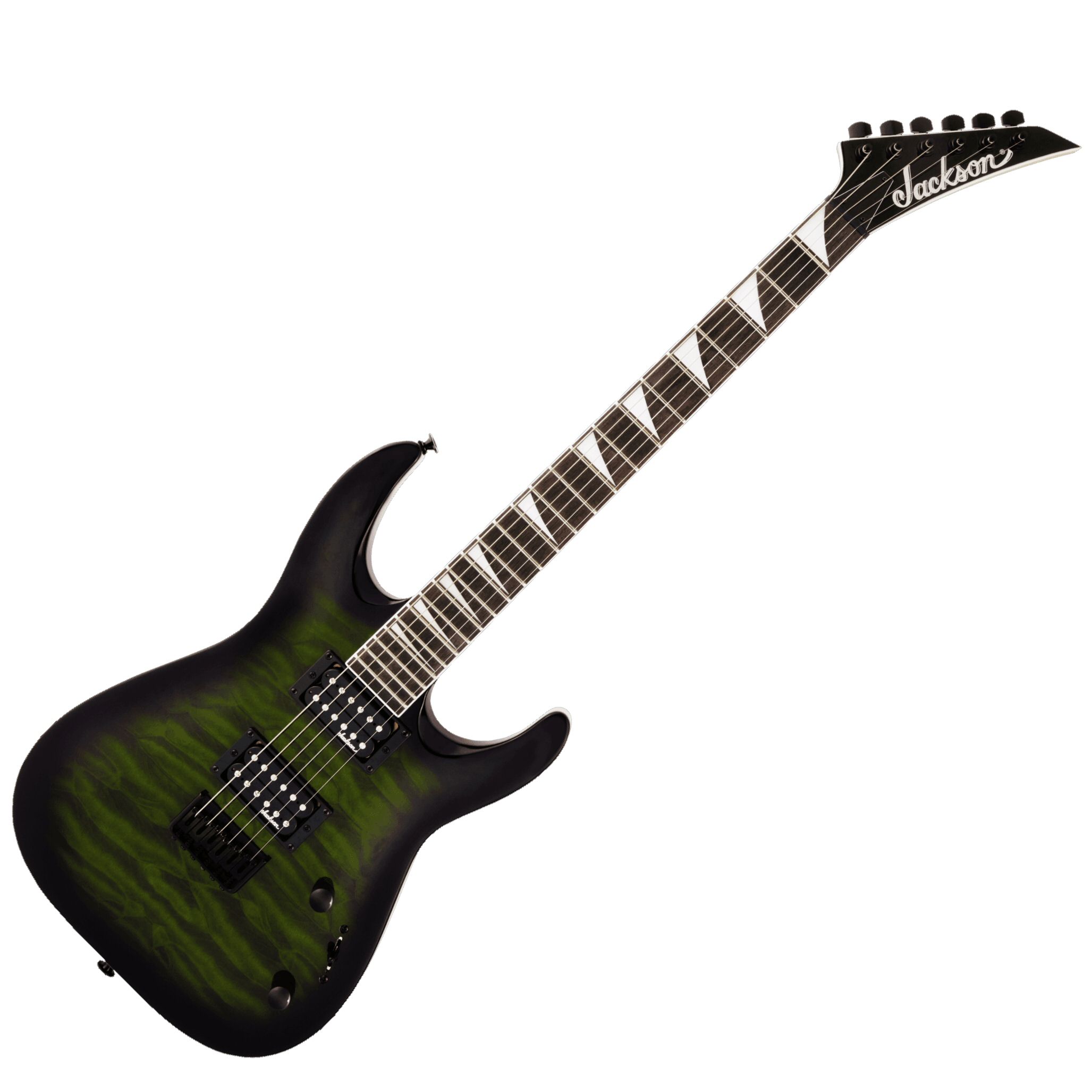 Sporting classic Jackson style, the JS Series Dinky Arch Top JS32Q DKA HT is decked out in all-new colours. That’s right – awesome looking transparent burst finishes with pointy black headstocks and all-black hardware.