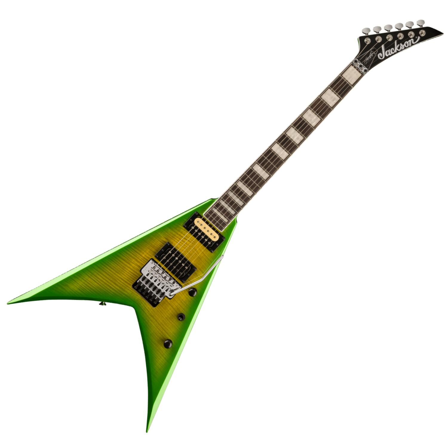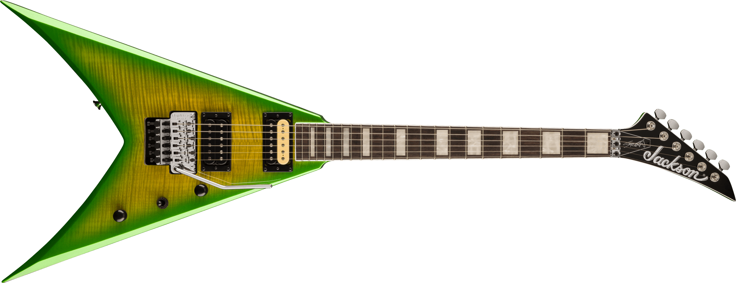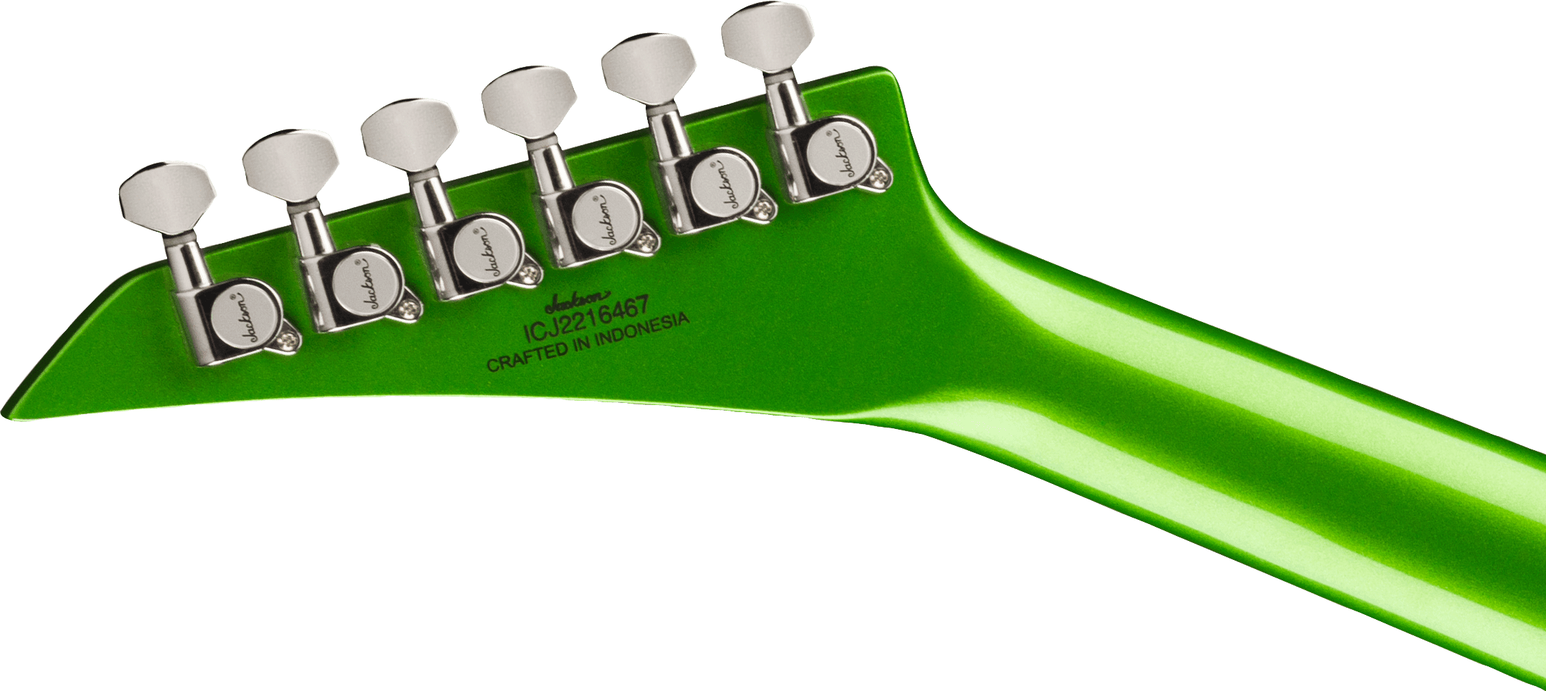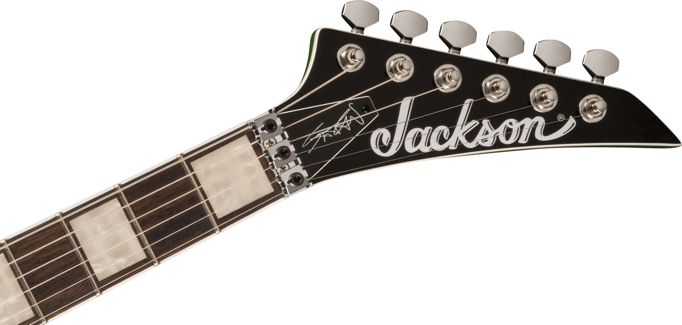 Equipped with Jackson® High-Output humbucking pickups and a Floyd Rose® Special double locking bridge, the “Baldini” delivers crushing tone and unbeatable sustain. The Jackson® pointed 6-in-line headstock and sealed die-cast tuners ensure rock-solid tuning stability.