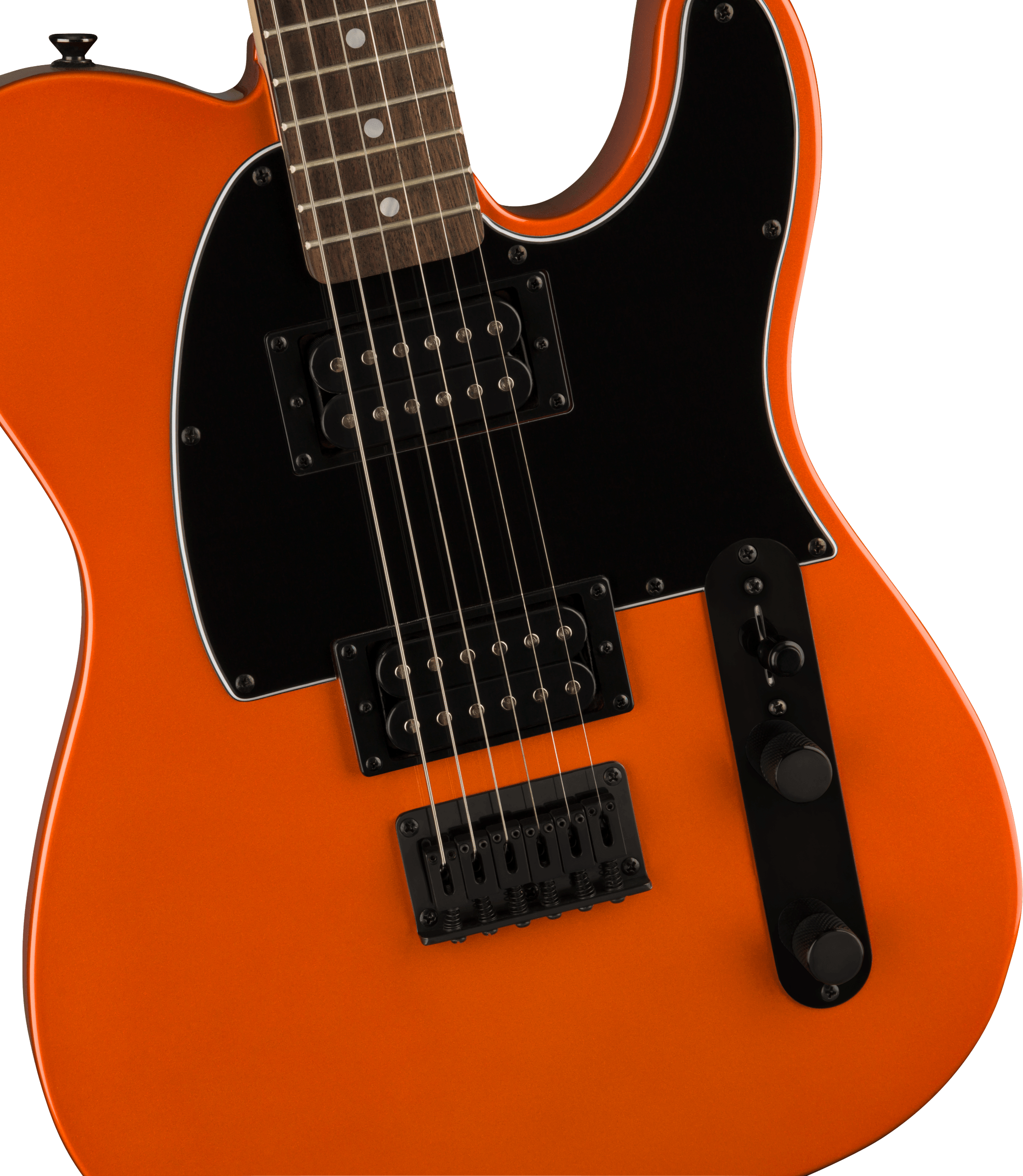 A superb gateway into the time-honored Fender family, the Squier Limited Edition Affinity Series Telecaster HH delivers legendary design and quintessential tone for today’s aspiring guitar hero. This limited edition Tele features several player-friendly refinements, such as a thin and lightweight body, a slim and comfortable “C”-shaped neck profile, a string-through-body bridge for optimal body resonance and sealed die-cast tuning machines with split shafts for smooth, accurate tuning and easy restringing. Unique features include its limited Metallic Orange colour, as well as a colour-matched headstock – a rare feature on these guitars. Loaded with dual Squier humbucking pickups with 3-way switching for genre-defying sonic variety, this model is ready to accompany any player at any stage.