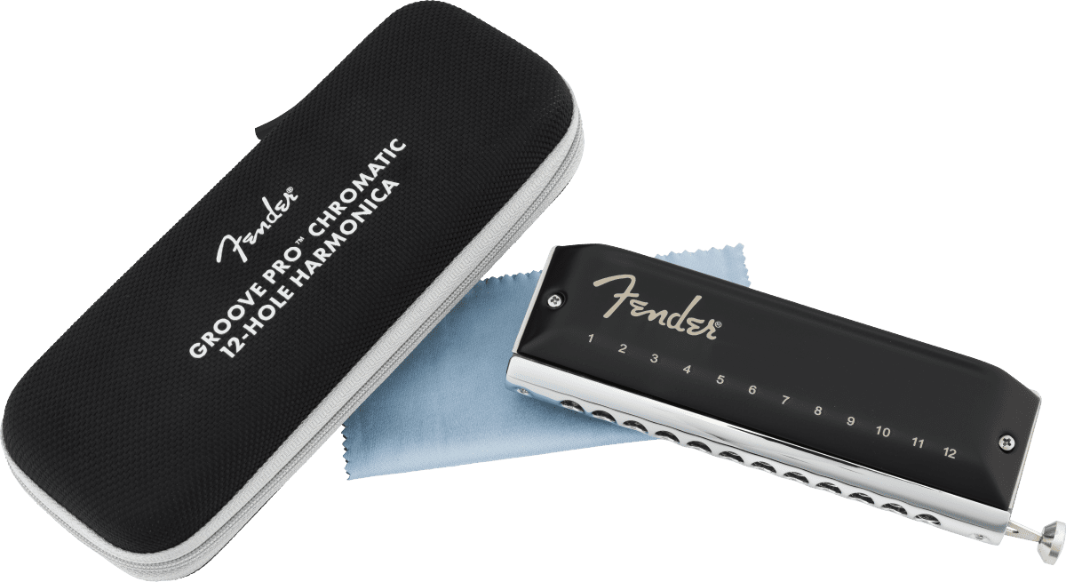 Elevate your playing with the Fender Groove Pro Chromatic 12-Hole Harmonica. Featuring a valveless design and an integrated button for seamless half-note transitions, this harmonica delivers a versatile 48-note range for ultimate creative expression. Built with phosphor bronze riveted reeds, stainless steel covers, and moisture-resistant ABS combs, it’s designed to last and delivers a dynamic, expressive sound.