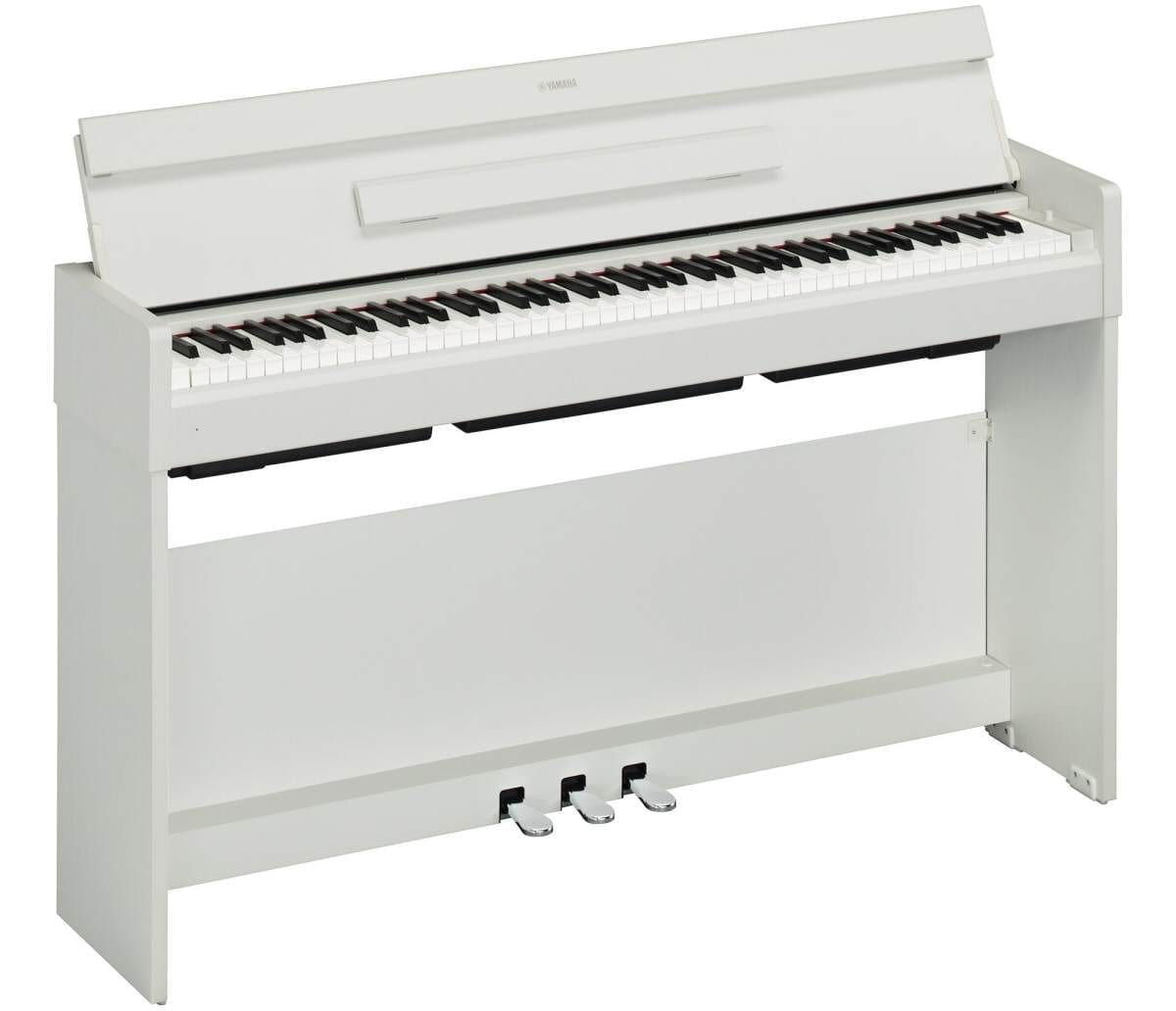 The Yamaha ARIUS YDP-S35 is their new slim size, 88-key digital piano featuring a weighted keyboard. With Yamaha’s CFX concert grand piano sound built-in, you’ll experience a rich expressive playing feel with the GHS keyboard. This new model includes newly equipped ear-friendly functions, plus compatibility with Yamaha’s Smart Pianist app. And to make it a truly versatile addition to your room, the lid becomes flat tabletop when closed.