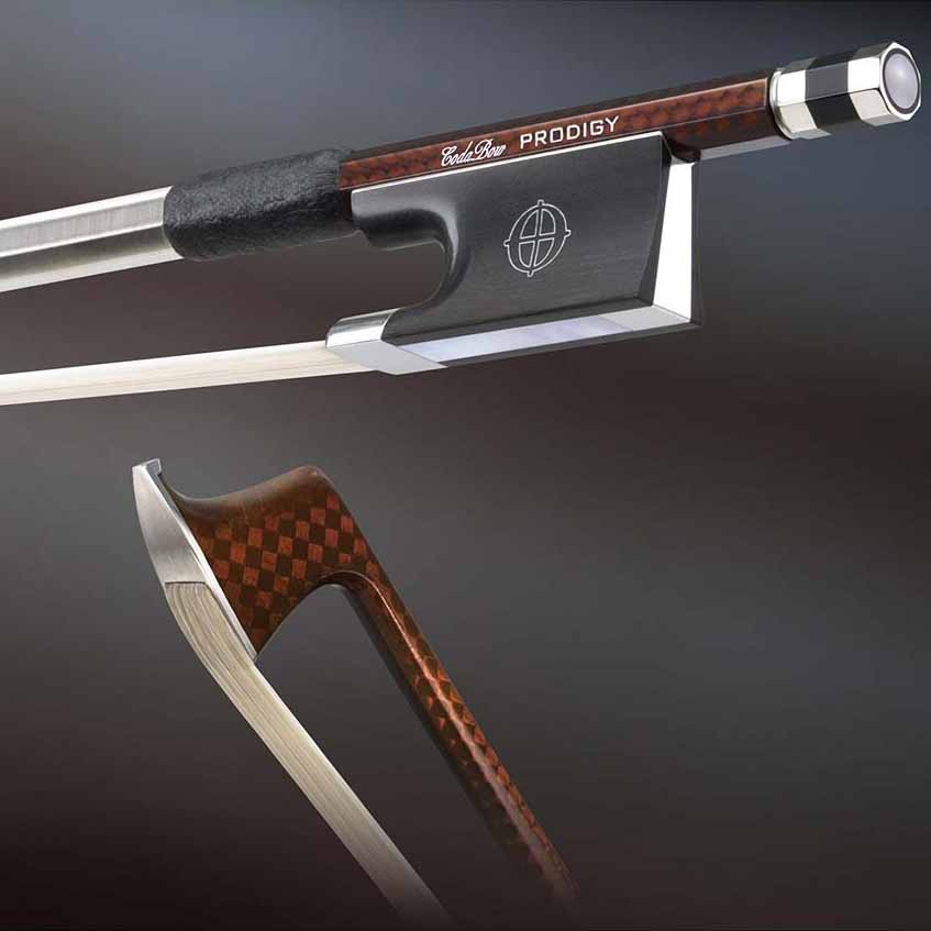 A good choice for the true beginner, the Coda Bow Prodigy is weighted for stability. As a result, students find the Prodigy easier to control and quickly gain confidence in their playing. Also, parents and teachers hear fewer squeaks and squawks! A vast improvement over comparably priced wooden bows, which tend to present the young player with mechanical difficulties – i.e. warp, twist, uneven camber, over-flexibility – the Prodigy is stiff, straight, meticulously crafted, and easy to play. The advancing player, however, may prefer the Coda Bow NX for its greater agility.