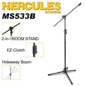 Hercules MS523B Pro EZ Clutch Tripod Hideaway Microphone Boom Stand